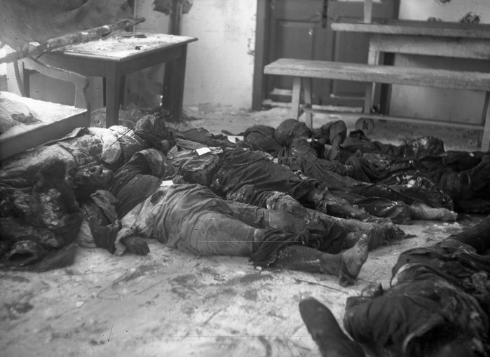 Жуткий кадр: тела жителей г. Калинина, обнаруженные в погребе дома №25 по улице Вольной после освобождения города от немецко-фашистских войск. [январь 1942 г.] Ф. Ф-1. Оп. 2. Д.14.