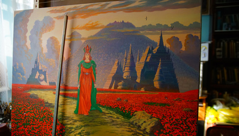 «А потом я подумал, что было бы интересно перейти от черно-белого цвета к более богатой гамме. Активно живописью занялся в 37 лет», - рассказывает художник. – «Одно время меня очень сильно увлекали архитектурные пейзажи с церквями, иногда с замками. Сколько себя помню, я всегда интересовался древней и древнейшей историей. В моем творчестве эта тема постепенно стала все больше доминировать. В том числе меня интересовала легендарная Атлантида, цивилизация, которая не вписывается в какие-то рамки истории. Волновала Древняя Русь, дохристианская история».
