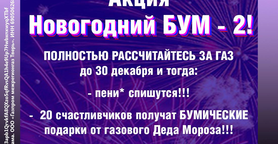 В Тверской области проходит акция «Новогодний Бум 2!». По итогам проведения акции ее участники получат ценные призы.