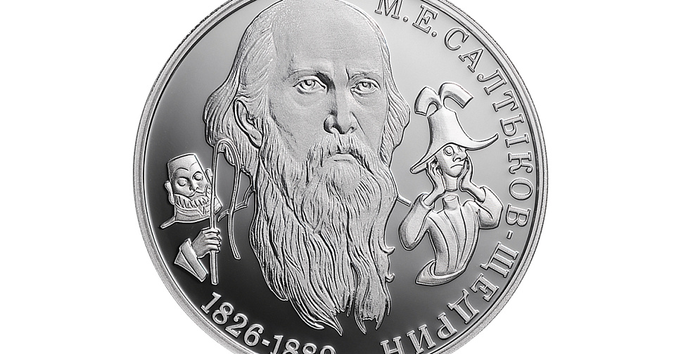Монета диаметром 33,0 мм выпущена тиражом три тысячи единиц в рамках серии «Выдающиеся личности России». На оборотной стороне — рельефные портрет писателя и фигуры градоначальников города Глупова из сатирического романа-хроники «История одного города».