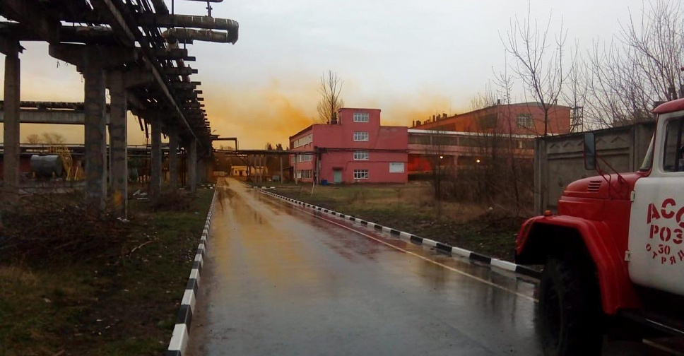 На место прибыли спасатели, которые установили, что инцидент произошел в отдельно стоящем здании складского помещения, в котором находится резервуар с содержащей бром жидкостью. В результате химической реакции из него произошел выброс желтого дыма.
