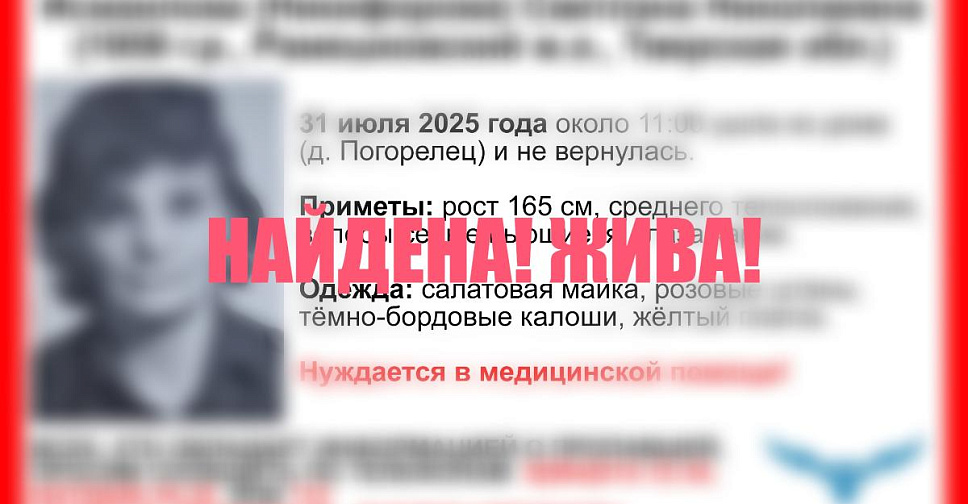 Около 11:00 пенсионерка ушла из дома в деревне Погорелец Рамешковского округа и до сих пор не вернулась. Она была одета в розовые штаны, салатовую майку и желтый платок.