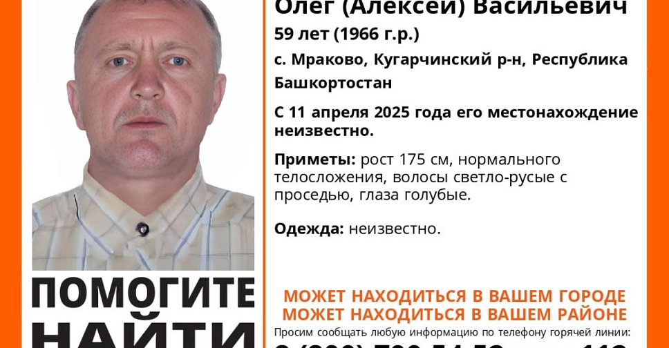 Местонахождение 59-летнего мужчины неизвестно с 11 апреля 2025 года.