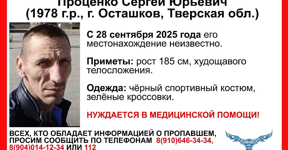 Новости Осташкова, 3 октября. — Пропавший нуждается в медицинской помощи.