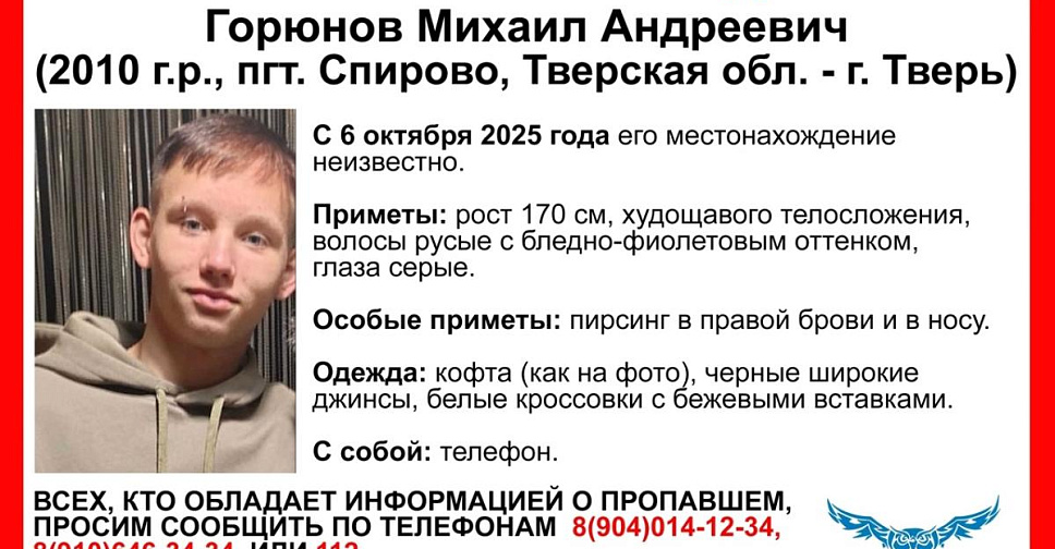 Местонахождение несовершеннолетнего неизвестно с 6 октября 2025 года.
