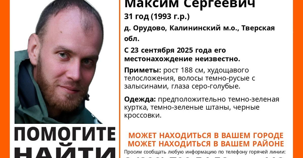 Пропал 31-летний житель Калининского округа Тверской области, сообщили волонтеры поискового отряда «ЛизаАлерт».