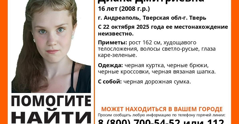 Местонахождение 16-летней девушки неизвестно с 22 октября 2025 года.