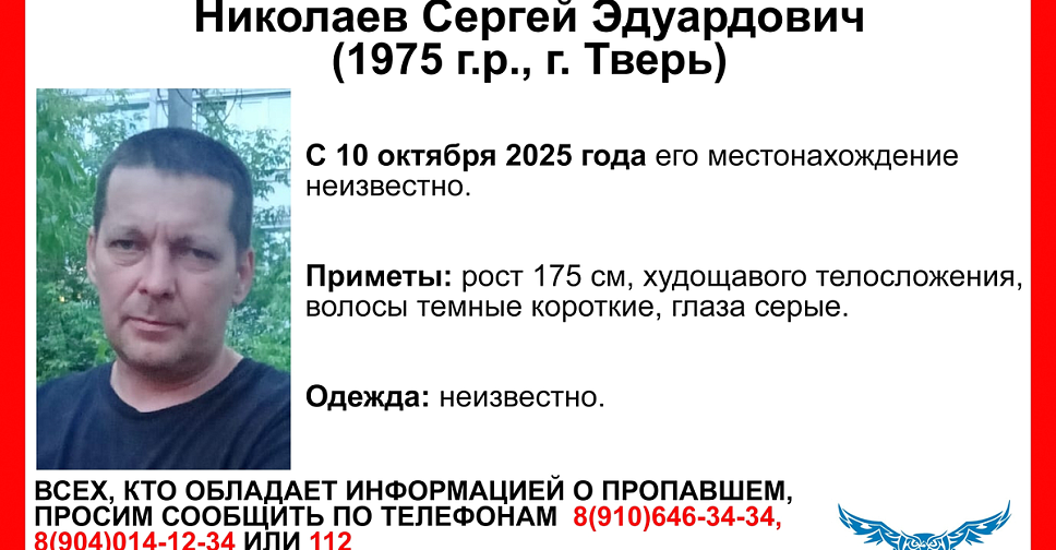 Местонахождение мужчины неизвестно с 10 октября 2025 года.