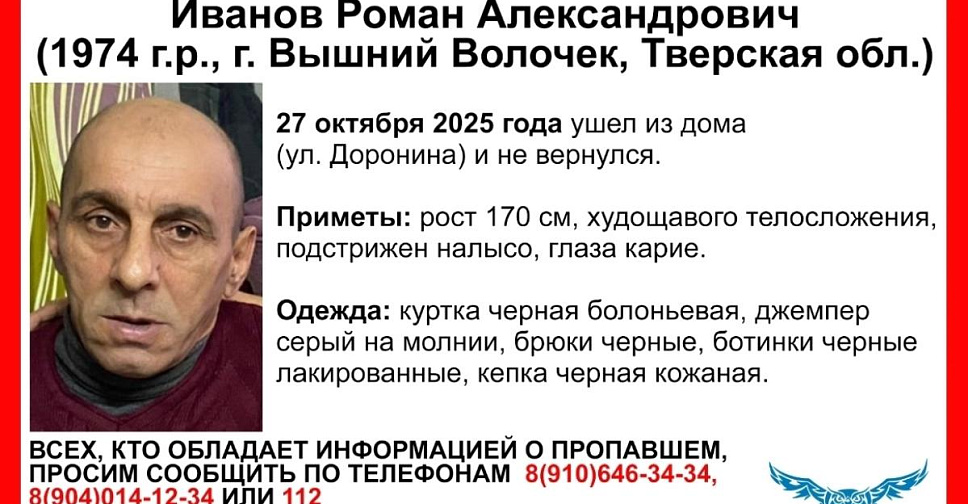 Волонтеры отряда «Сова» объявили о поиске 51-летнего жителя Вышнего Волочка.