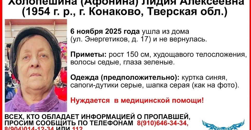 Новости Конаково, 7 ноября. — Ее местонахождение неизвестно с четверга.