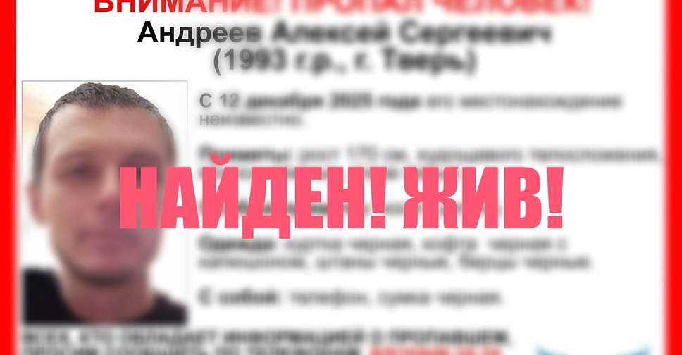 Вечером 21 декабря 2025 года волонтеры поисково-спасательного отряда «Сова» сообщили о том, что пропавший в Твери 32-летний мужчина найден живым.