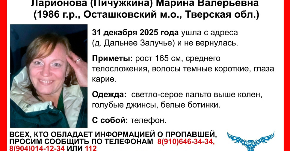 Женщина ушла из дома в деревне Дальнее Залучье Осташковского района Тверской области 31 декабря и не вернулась.