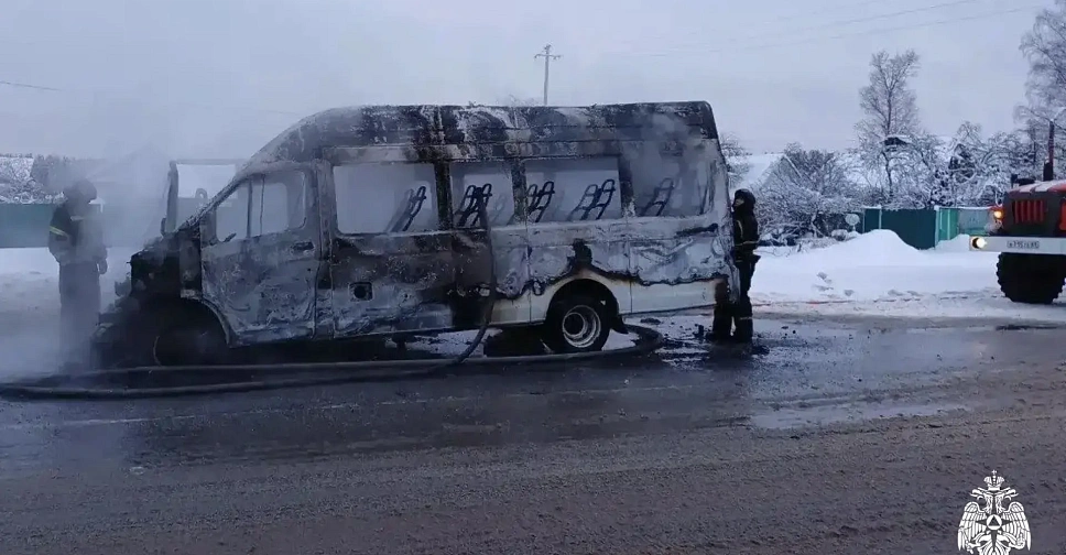 Утром 12 января 2026 года на трассе под Тверью сгорело маршрутное транспортное средство.