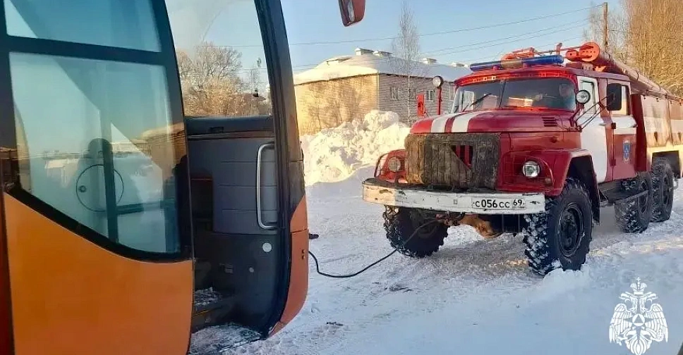В городе Калязине Тверской области на заснеженной дороге застрял туристический автобус. О происшествии сообщает региональное управление МЧС.