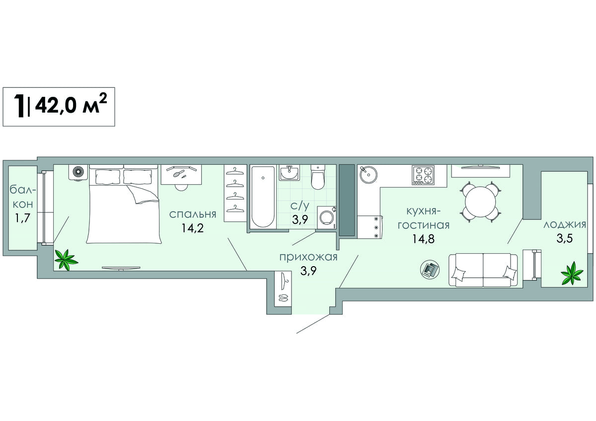 А хорошим вариантом для инвестиций будет 1-комнатная квартира с просторной кухней-гостиной. Платеж 21 335 руб/мес.