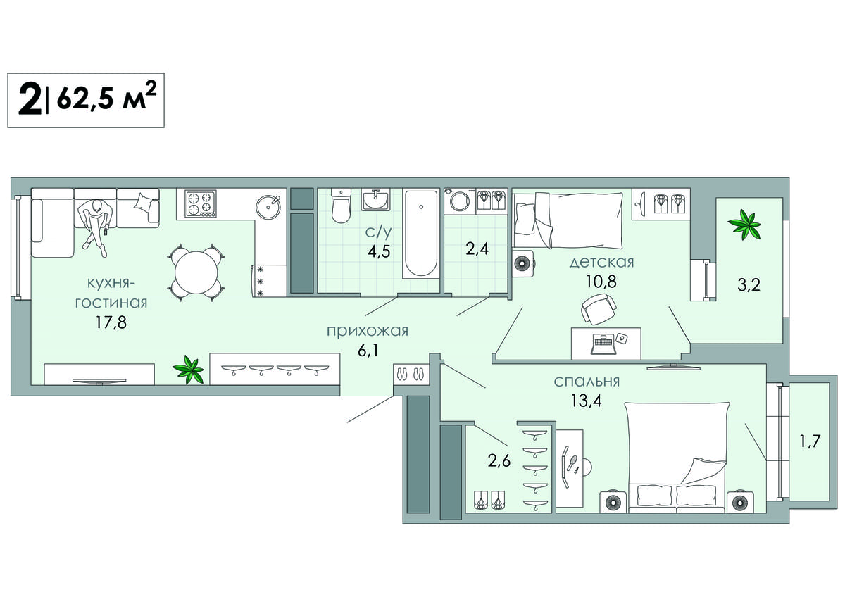 Сейчас семья может приобрести квартиру в ЖК ТОТ по семейной ипотеке со ставкой всего 3,5%. Например, такую 2-комнатную с мастер-спальней и отдельной постирочной комнатой. Платеж составит 26 908 руб/мес.
