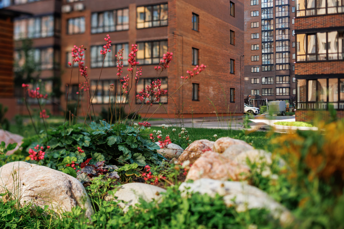 Во всех жилых комплексах «Нового города» застройщик применяет уникальную концепцию озеленения «4 сезона». Ее суть — в создании устойчивой экосистемы, которая сохраняет декоративность в любое время года. Это не просто высадка растений, это продуманная композиция: