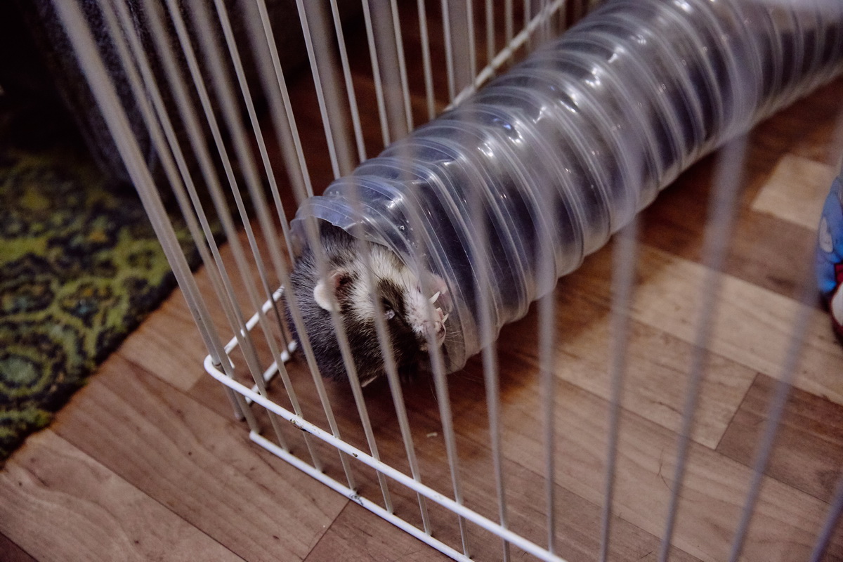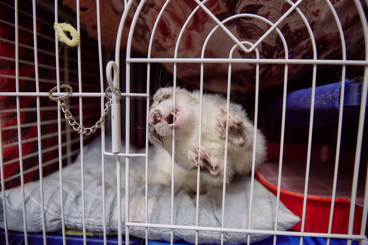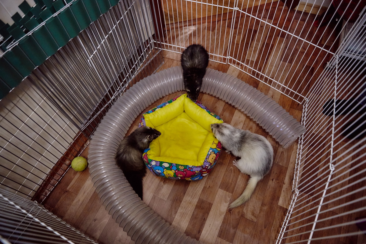 Первый хорек у Галины появился как подарок. Тверитянка просто увидела в соцсети объявление: «Отдам хорька», и решила порадовать подругу, у которой к тому времени уже был свой, домашний. Но подарок оказался с сюрпризом: «девочку» не стерилизовали, и потому она не могла ужиться с кастрированным животным из питомника. Это, кстати, один из признаков того, что животное от частников-разведенцев. А еще — у таких зверей часто отсутствуют документы, чипирование, воспитание (хорьков как и кошек приучают ходить в лоток), прививки. Нередко такие животные неправильно питаются и из-за этого болеют.