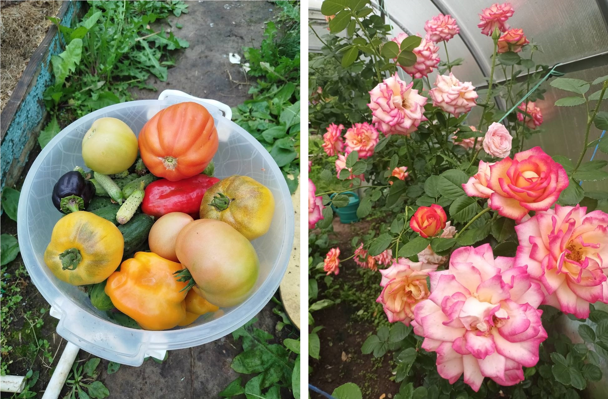 — Дом моей свекрови. Помогаю ей по огороду. Много помидоров (мы обожаем помидоры разных сортов), огурцов, перца, чеснока, лука, моркови. Тыква и кабачки в большом количестве. Картошка тоже своя. И розы!