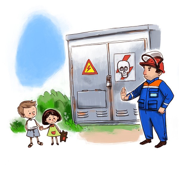 - Категорически запрещается влезать на опоры воздушных линий электропередачи, на крыши вагонов, домов и строений, где близко проходят электрические провода, разбивать лампы, изоляторы, запускать бумажного змея вблизи провода, делать «селфи» вблизи энергообъектов, играть под воздушными линиями, а также проникать в трансформаторные подстанции или за ограду электрических подстанций и трансформаторов, открывать дверцы распределительных щитов и других электрических устройств в подъездах, подвалах, на чердаках.