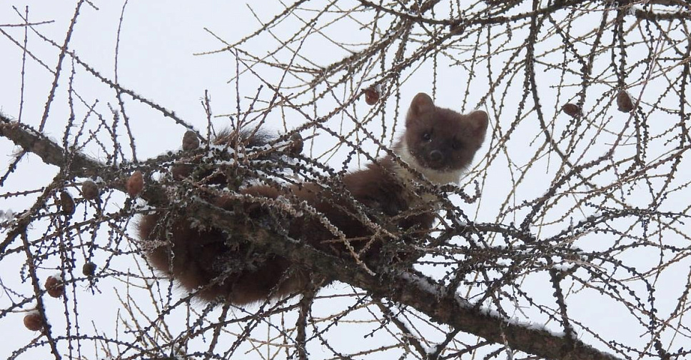 Сотрудники галереи успели запечатлеть изящную гостью на снимках, пока она ловко перепрыгивала по тонким веточкам высоких деревьев. После этого пушистый зверек поспешил скрыться.