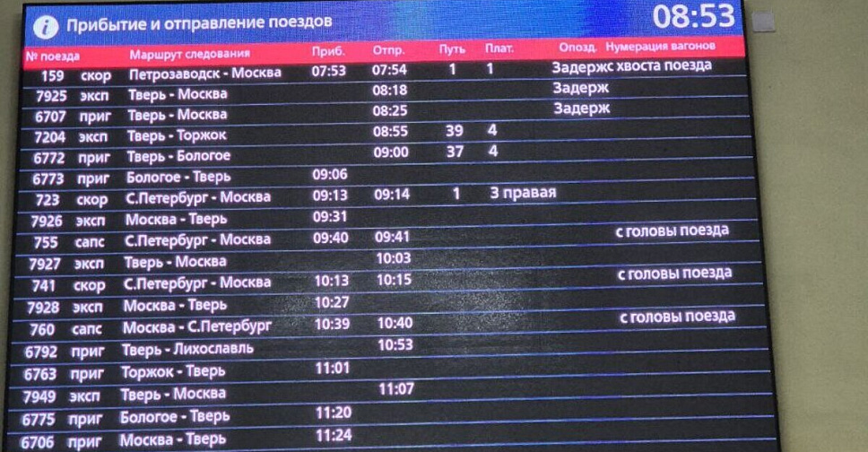 Речь идет об электричках в сторону Москвы и обратно (в сторону Тверской области, Твери), причина задержки — технические проблемы.