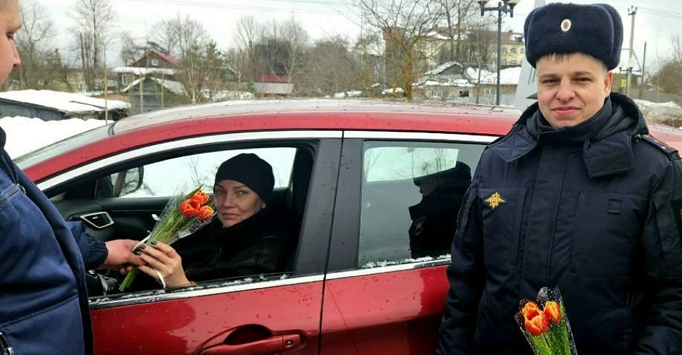 Новости Твери, 8 марта. — Водительниц благодарили за дисциплинированность и аккуратность на дорогах.