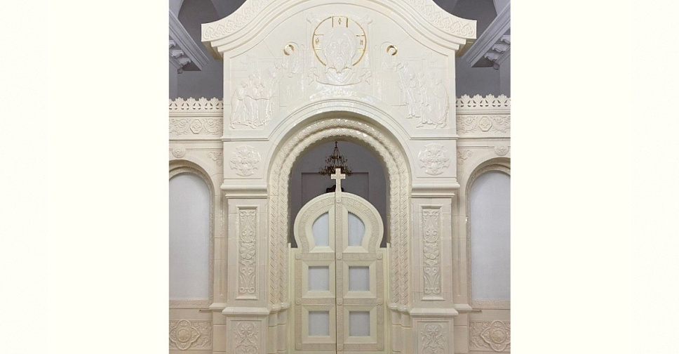 Уникальный фаянсовый иконостас, работу над которым завершили умельцы тверской художественной мастерской «Паллада», состоит из более, чем двух тысяч деталей, достигает 20 метров в ширину и 5 метров в высоту.