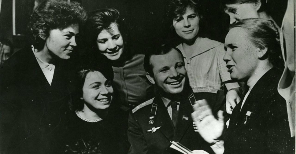 - Ю.А. Гагарин среди работниц бригады Героя Социалистического труда В.И. Гагановой, 4 апреля 1964 г. // ГАТО. Ф. Р-2130. Оп. 1. Д. 58.