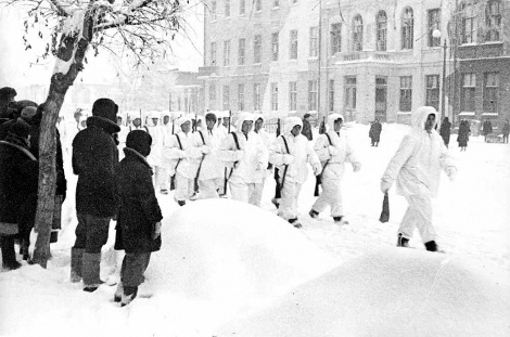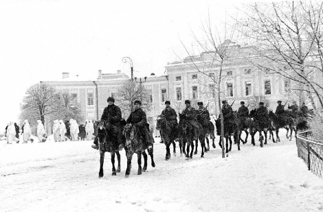 Войска Калининского фронта в центре Калинина на пл. Ленина, 17 декабря 1941 г. Место съемки: Калинин. Автор съемки: Борис Евгеньевич Вдовенко