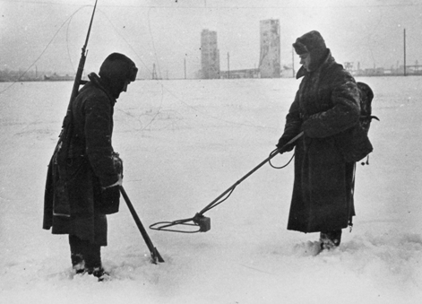 Под Калинином. Саперы разминируют дорогу к городу на шоссе Клин — Калинин, 16 декабря 1941 года. Место: Калининский фронт. Автор съемки: Борис Евгеньевич Вдовенко