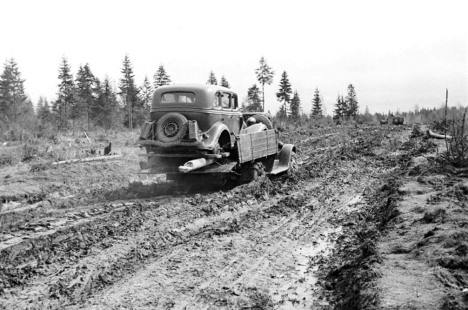 Автомашины на одной из дорог фронта, май 1942 г. Место съемки: Калининский фронт. Автор съемки: Виктор Сергеевич Кинеловский