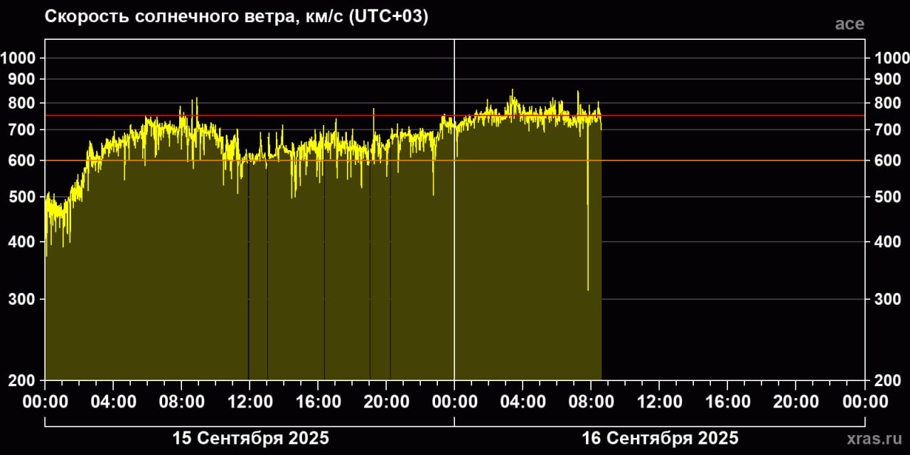 И хотя, согласно последним показаниям, скорость солнечного ветра совсем не снижается и уже пересекла границу 750 км/с, благодаря низкой энергии магнитного поля солнечного ветра давление на магнитное поле нашей планеты не представляет угрозы.