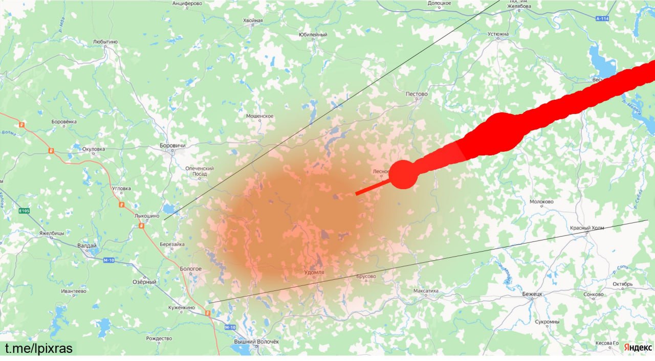 «Фрагменты тела выпали на Землю вдоль траектории движения объекта в четырехугольнике, приблизительно образованном населенными пунктами Боровичи, Вышний Волочок, Максатиха, Пестово, скорее всего к северу от расположенного внутри этого четырехугольника города Удомля. Часть фрагментов могла достичь расположенной примерно в 100 км западнее от места последнего взрыва трассы М-11 "Нева" Москва-Санкт-Петербург», — сообщили в лаборатории солнечной астрономии ИКИ РАН.