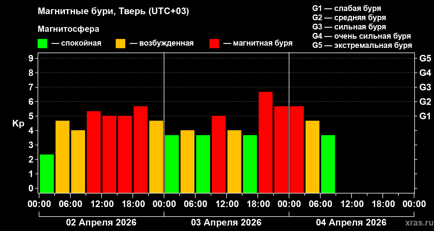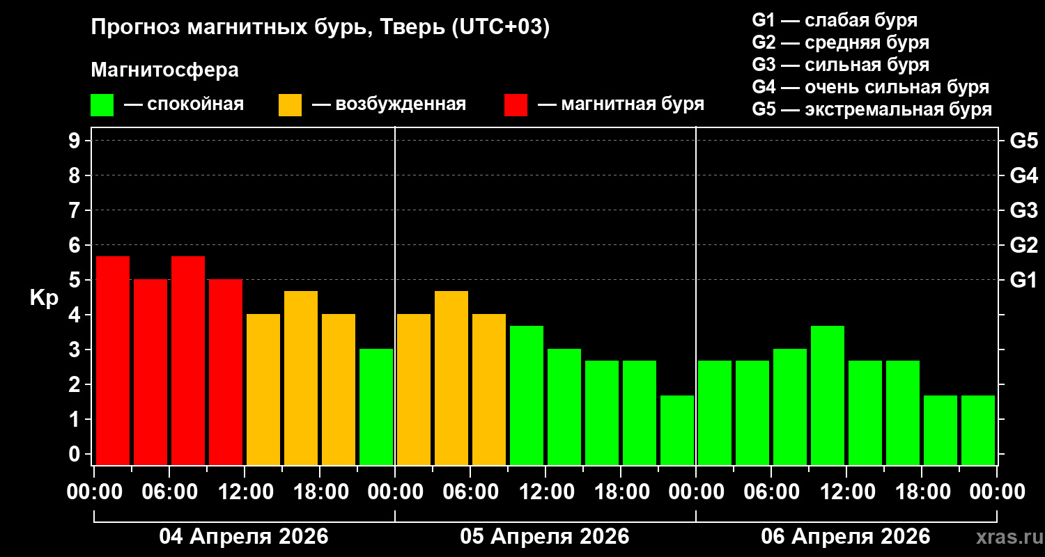 Тем временем монитор магнитных бурь онлайн сообщает, что магнитная буря, начавшаяся еще вечером 3 апреля, завершилась сегодня в три часа ночи. Будет ли продолжение, пока неясно.