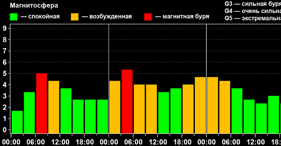 Ожидаются слабые и средние бури — уровня G1-G2.