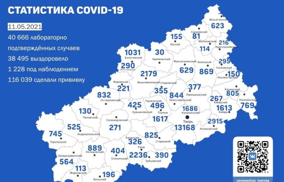 Карта коронавируса в Тверской области к 21 ноября 2022 года